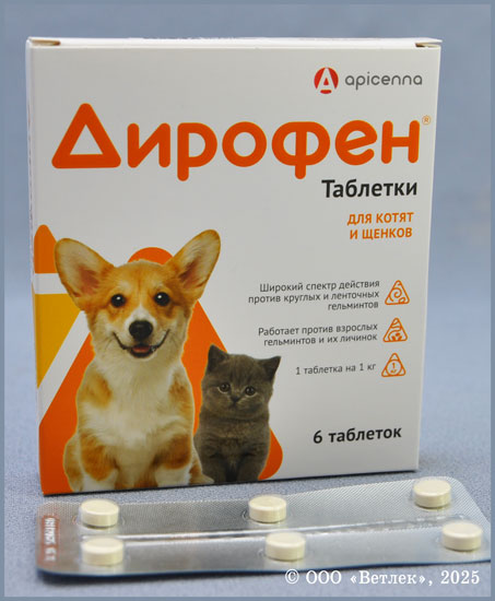 Дирофен таблетки для кошек и собак мелких и средних пород, уп. 6 таб.