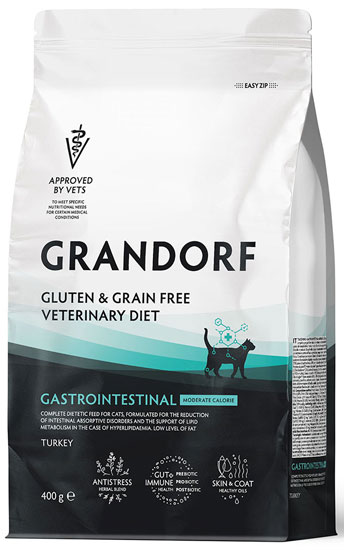 Ветеринарная диета для кошек при острых расстройствах пищеварения и гиперлипидемии (Grandorf GASTROINTESTINAL MODERATE CALORIE), уп. 2 кг