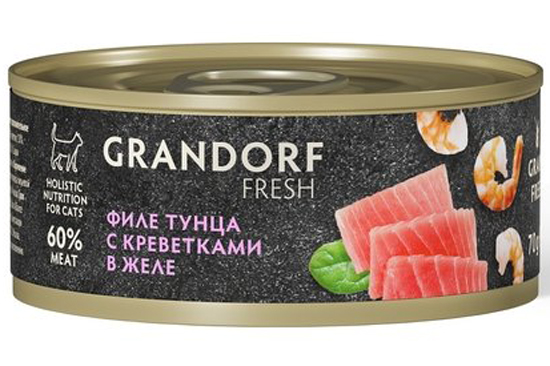 Грандорф Консервы для кошек (Grandorf Fresh Tuna With Shrimp In Jelly) Филе тунца с филе лосося в желе, уп. 70 г