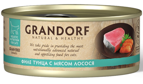 Грандорф Консервы для кошек (Grandorf Holistic & Hypoallergenic) филе Тунца с мясом лосося, уп. 70 г