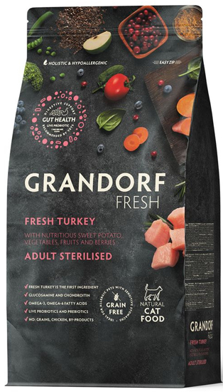 Грандорф Беззерновой корм для Стерилизованных кошек (Grandorf Fresh Sterilised) Индейка с бататом, уп. 2 кг