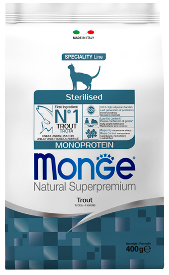 Монж Корм для стерилизованных кошек (Monge Cat Monoprotein Sterilised Trout) форель, уп. 1,5 кг