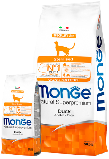 Монж Корм для стерилизованных кошек (Monge Cat Monoprotein Sterilised Duck) утка, уп. 1,5 кг