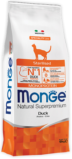 Монж Корм для стерилизованных кошек (Monge Cat Monoprotein Sterilised Duck) утка, уп. 10 кг