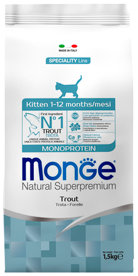 Монж Корм для котят (Monge Monoprotein Kitten Trout) форель, уп. 1,5