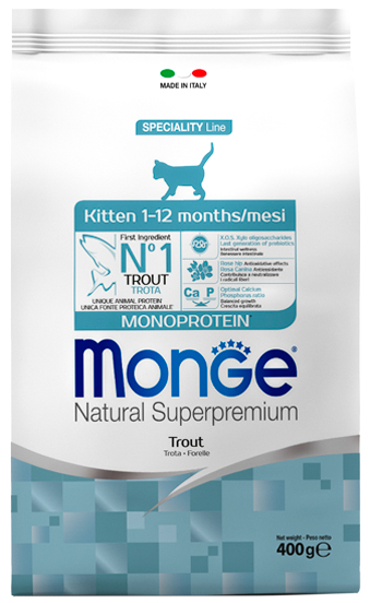 Монж Корм для котят (Monge Monoprotein Kitten Trout) форель, уп. 400 г