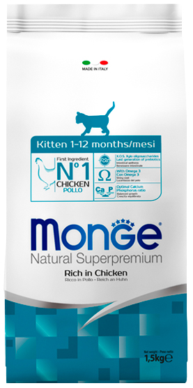 Монж Корм для котят, беременных и кормящих кошек (Monge Kitten) с курицей, уп. 1,5