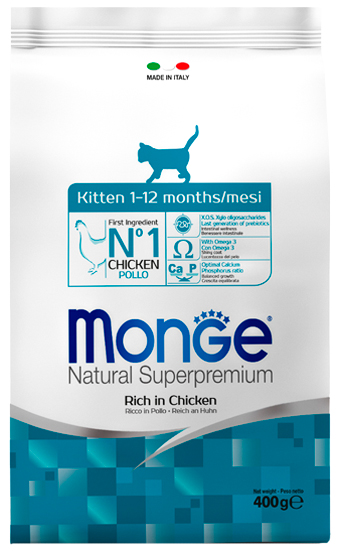 Монж Корм для котят, беременных и кормящих кошек (Monge Kitten) с курицей, уп. 400 г