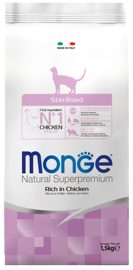 Монж Корм для стерилизованных кошек (Monge Sterilised Cat) с курицей, уп. 1,5 кг