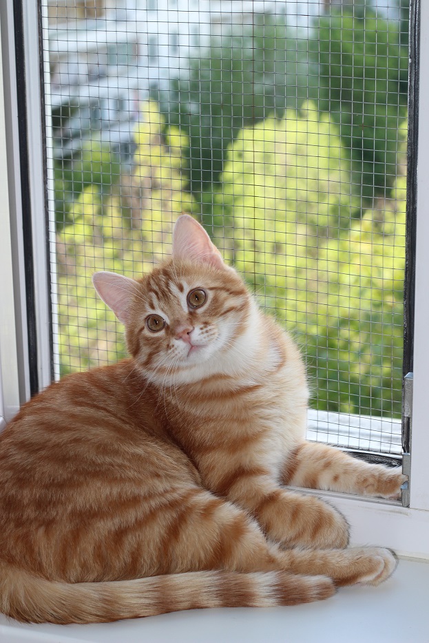 Как всякий нормальный годовалый котик, он очень любит носиться и играть, особенно с другими кошками.