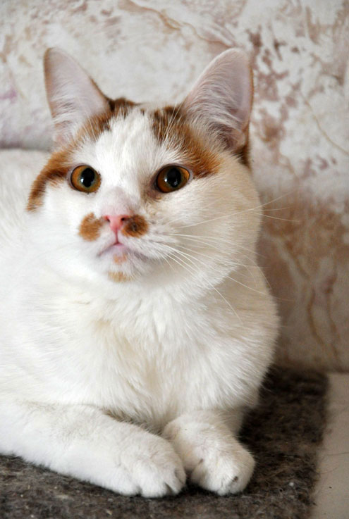 Байт пятнистый мальчуган с медовыми глазами, очаровательными рыжими веснушками на морде. Байт настоящий массовик затейник, любит внимание, играть и спать плотно прижавшись. Лоточек на отлично, кастрирован.