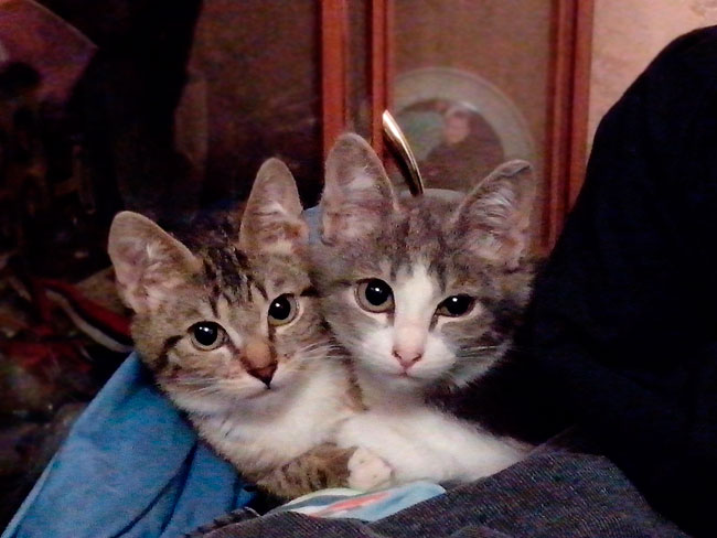 Котя – полосатая трехцветка, Мотя – пятнистая серо-белая.