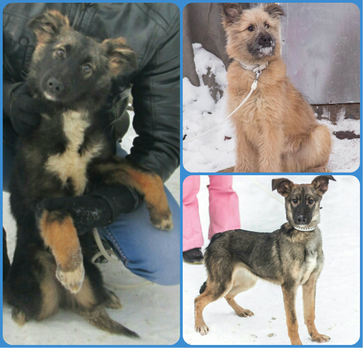 Новое сообщениеОчаровательные щенки в добрые руки. 1 мальчик (на фото справа сверху) и 2 девочки, возраст — 5 месяцев. Полностью здоровы, привиты, имеют ветпаспорта. Вырастут среднего размера. Отдаются как в квартиру, так и в частный дом, вольер. Характер спокойный, уравновешенный, проявляют охранные качества. Хорошо ладят с другими животными. Прекрасно подойдут для семьи с детьми.