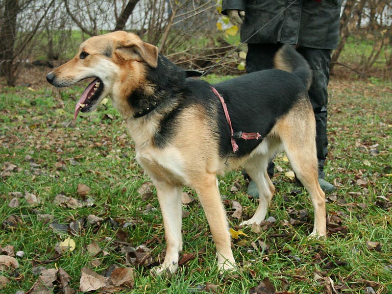 Такой овчароподобный пес только с висячими ушами. Совершенно приучен к людям. Видимо бывший домашний. Когда попал в приют очень беспокоился, бегал по вольеру и просился гулять. Сразу же пошел гулять на поводке. Вот только к собакам был не очень дружелюбен. Всех строил. Любит быть первым. Поэтому и такая кличка.