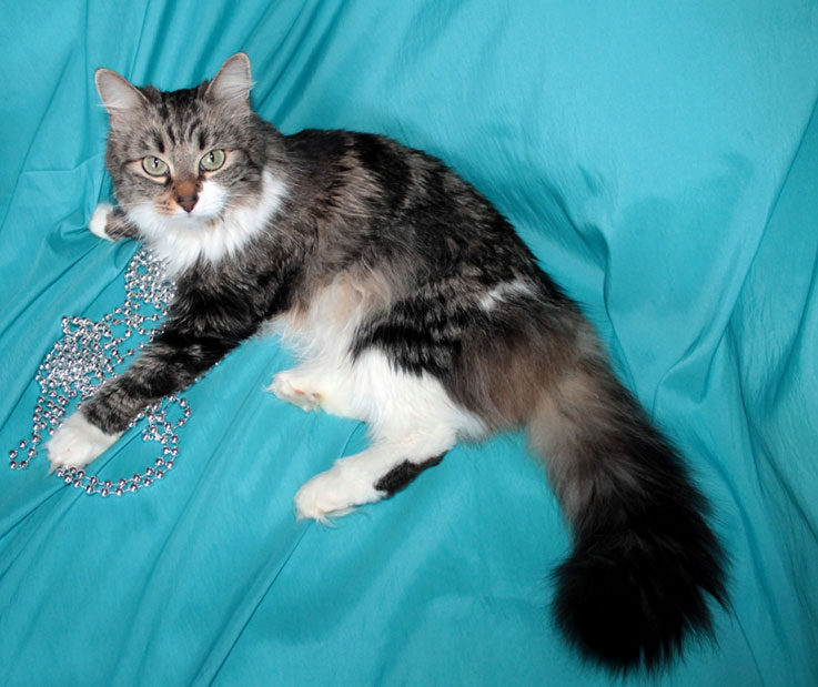 Сейчас эта роскошная мраморная красавица очень ждет своего хозяина в мини-приюте Москвы. Кристи совершенно уникальна по характеру! Более ласковую и человеческую кошечку просто сложно представить. Кристи обожает обниматься, обхватывая за шею и поджимая свои задние ножки. Она настоящее счастье! Наполнит ваш дом добротой и уютом. Кристи пристраивается единственной кошкой, т.к. не выносит присутствия других животных. Возраст около 1 года, здорова, стерилизована, лоточек на 5+.