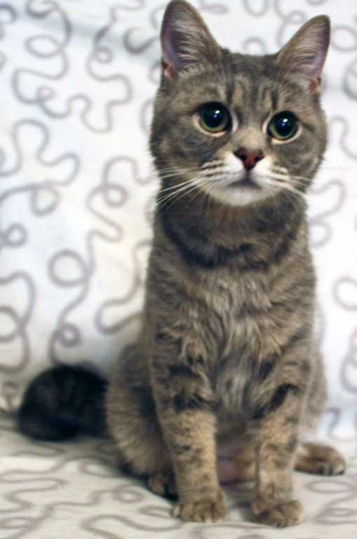 Молодая мордастая и курносая Софа – метис британской кошки. Хозяева бросили ее на даче, ей пришлось скитаться по рыночной площади подмосковного города и просить еду и ласку. Сейчас Софа в безопасности, она здорова и уже стерилизована. Софе всего около 8 месяцев. Ей очень нужна добрая и заботливая семья.
