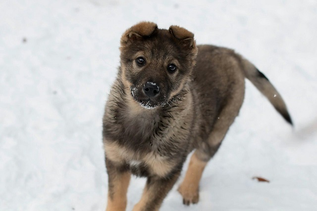Ушки у нее будут стоячие, будет немного мохнатая, очень добрый и доверчивый ребенок, лает пока только на кошек и птиц, но задатки охранника есть.