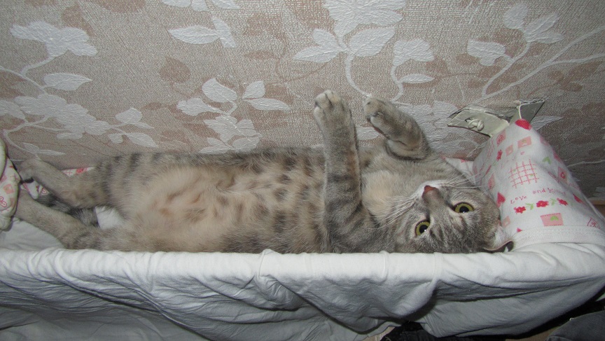 Несколько осторожна и боязлива по характеру. Еще я люблю играть. В еде не привередлива, легко обхожусь сухим кормом.