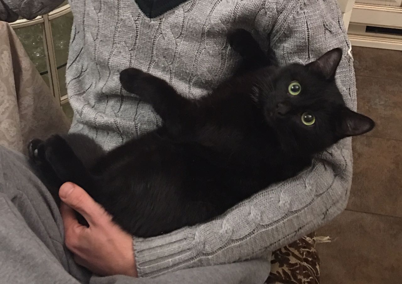 Уголёк дружит с детьми, попугаями, собаками и другими котиками. Играет, валяется, целуется.