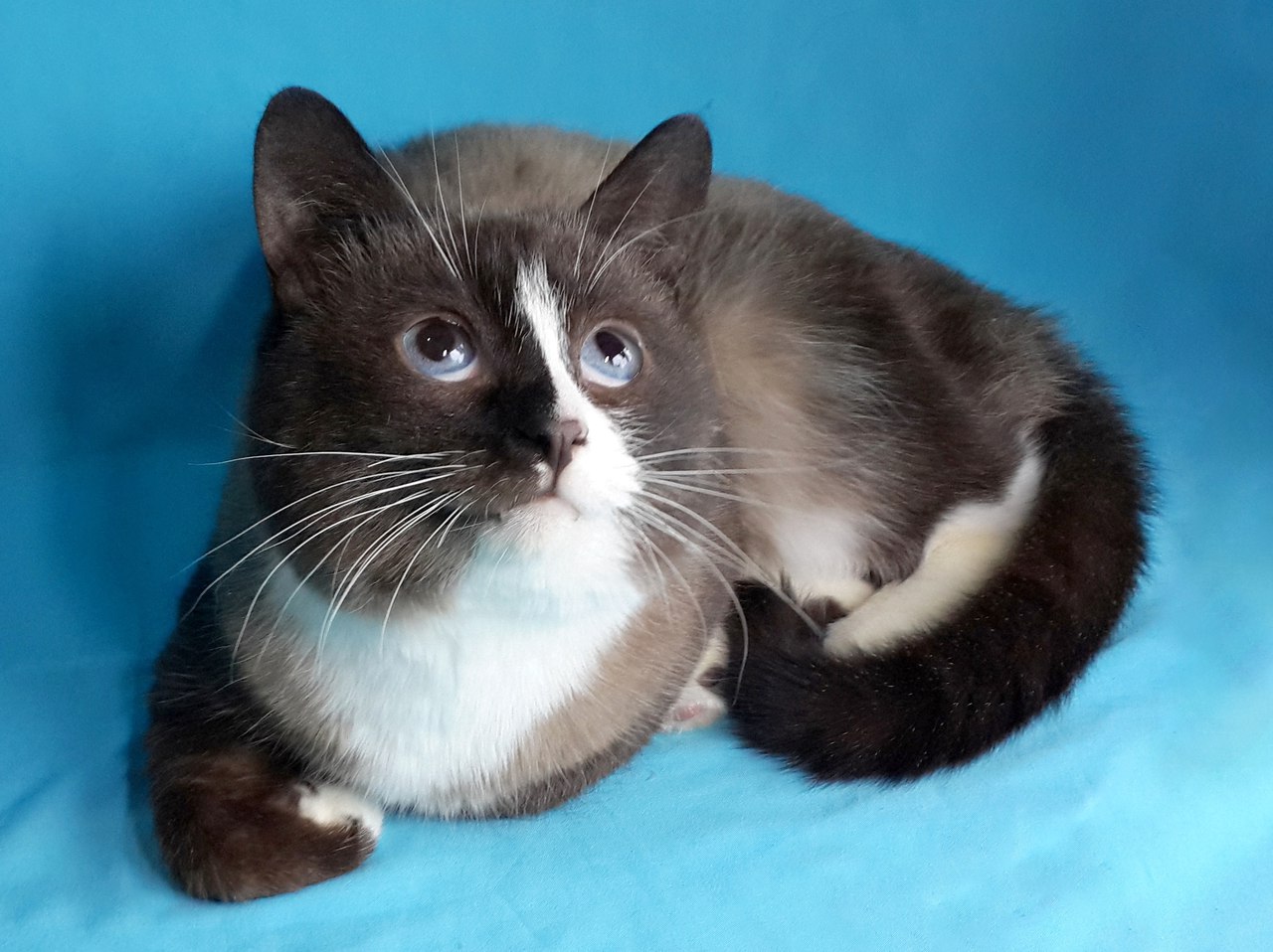 Сяма - очень добрый, очень ласковый, очень общительный молодой котик.