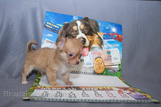 Новое сообщениеКлассный,клубный миниатюрный чихуа мальчик очень эффектного окраса. Шоколадный соболь, длинношерстный. Будет около 2 кг. К переезду с документами РКФ,клеймом, ветеринарным паспортом , договором купли продажи , подарками и консультациями готов в марте 2018 года.