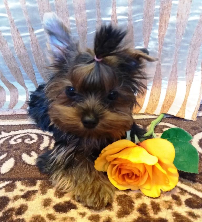 У девчушки маленький, хорошенький хвостик, идеально пропорциональная голова и туловище. Прекрасно посаженные крошечные треугольные ушки. Курносый носик, круглый лобик. Великолепно развитый костяк, не смотря на очень маленькие габариты щенка. Правильные движения. Идеальные зубки. Родничок закрыт. У девочки так же, чудесный характер: она общительная, ласковая и очень нежная! Весь пакет породных документов, прививки, клеймо, хвост купирован, Вет паспорт. Спешите стать обладателем этого поистине маленького чуда! Предлагается Щенок Йорка - настоящая душа компании и заводила, очень сообразительный, весёлый и игривый ребёнок. Крошечная задорная мордашка с красивыми и умными глазками.
