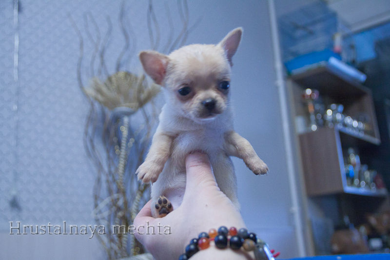 Новое сообщениеГотов к резерву щенок чихуахуа, мальчик из Щ8 помета питомника Хрустальная мечта, нежного кремового окраса. Курносая короткая мордочка, компактный, хвостик серпиком. Без брака. Для души и обожания. Метрика РКФ. Будет около 1.8- 2 кг.