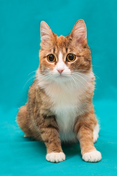 Очень нежная, ласковая кошечка с выразительными глазами, мурчалка, почти рыжее солныщко.