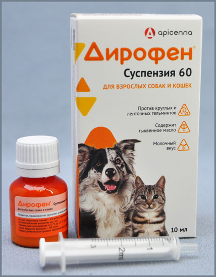 Дирофен суспензия 60 для взрослых собак и кошек, фл. 10 мл