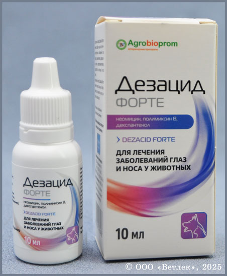 Дезацид форте (Dezacid forte) для лечения острых и хронических конъюнктивитов, кератитов и ринитов у собак и кошек