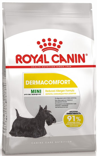 Роял Канин Дермакомфорт для взрослых и стареющих собак мелких пород с чувствительной кожей (Royal Canin Mini Dermacomfort), уп. 3 кг
