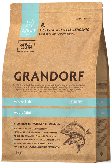 Грандорф низкозерновой корм для собак мелких пород (Grandorf Fresh Mini Adult White Fish) с белой рыбой, уп. 1 кг