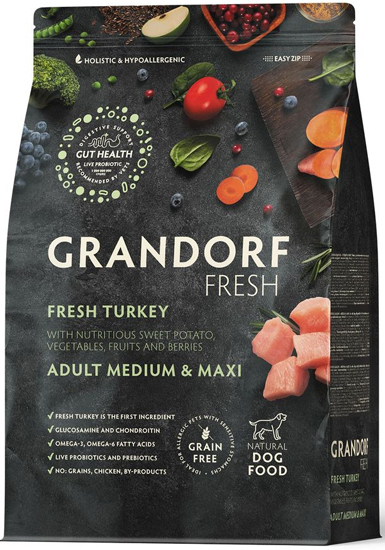 Грандорф беззерновой корм для собак средних и крупных пород (Grandorf Fresh Med/Maxi Adult) индейка с бататом, уп. 1 кг