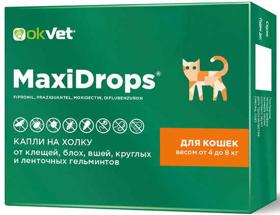МаксиДропс для кошек от 1 до 4 кг, пипетка 0,5 мл