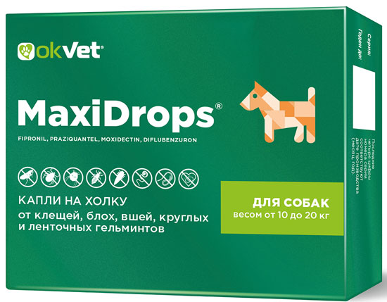 МаксиДропс для собак от 10 до 20 кг, пипетка 2 мл
