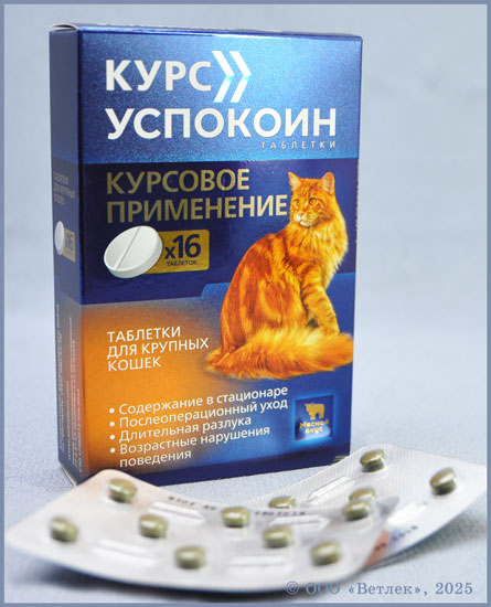 Курс Успокоин таблетки назначают для снижения возбуждения кошек: при хроническом страхе и тревоге, выраженном в беспокойстве, вокализации, мечении территории, повреждении предметов быта, возникающих при разлуке с хозяином, занятиях с кинологом, участии в выставках и т.п.