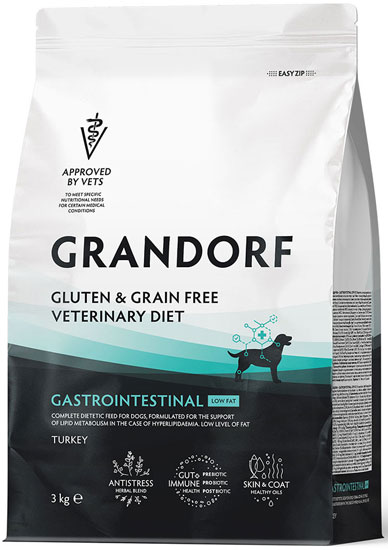 Ветеринарная диета для собак при остром и хроническом панкреатите (Grandorf GASTROINTESTINAL LOW FAT), уп. 3 кг