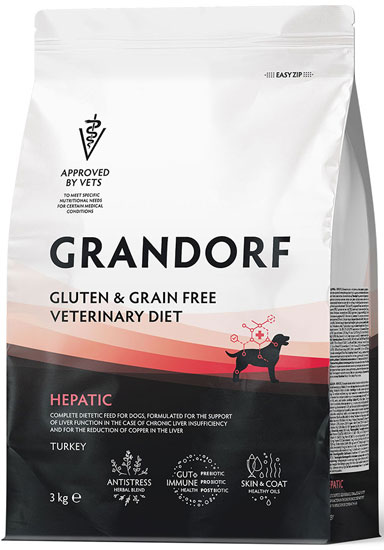 Ветеринарная диета для собак при хронической печеночной недостаточности (Grandorf HEPATIC), уп. 3 кг